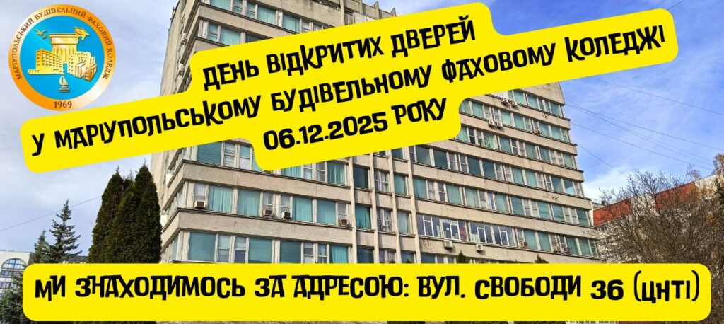 Маріупольський будівельний фаховий коледж відкриває свої двері для всіх, хто хоче дізнатися більше про сучасні професії, перспективи навчання та можливості, які відкриває якісна фахова освіта.